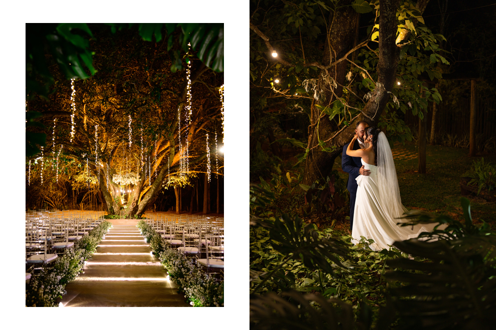 "Sempre me imaginei casando em meio à natureza, nunca em um salão fechado. Mesmo sendo o plano C, a cerimônia aconteceu em um deck com vista para o verde...