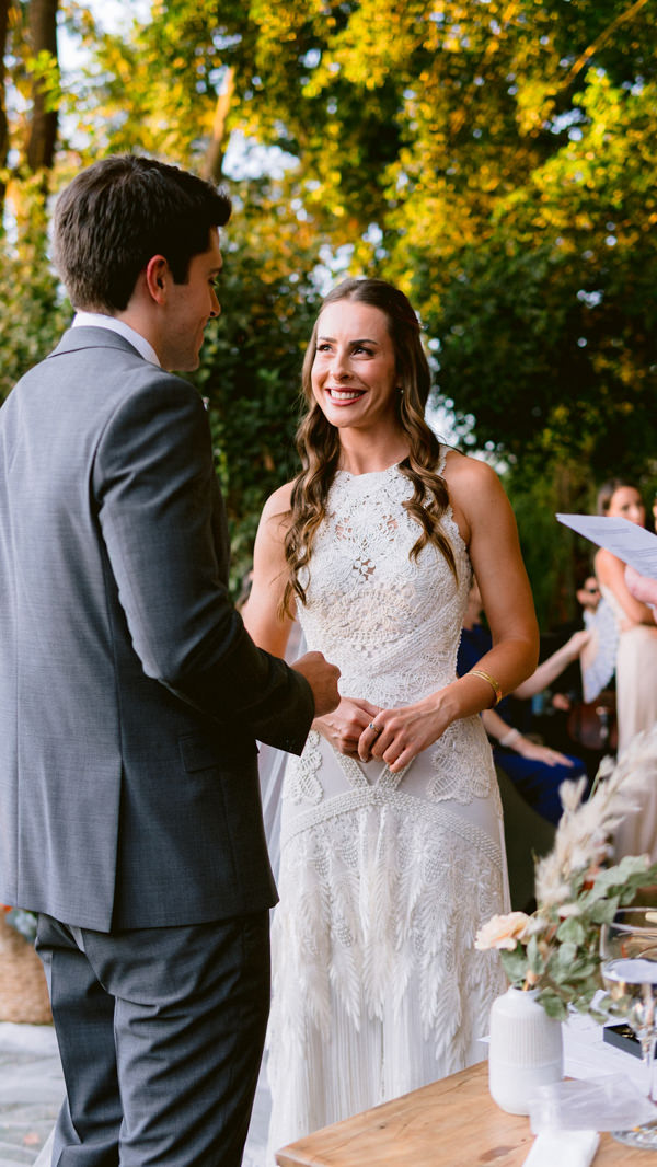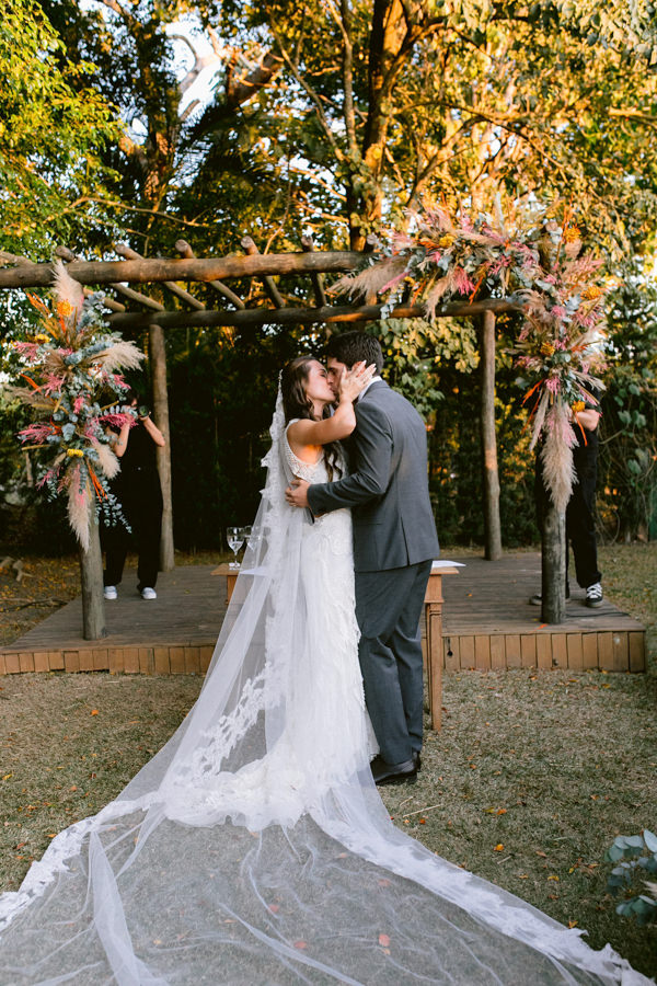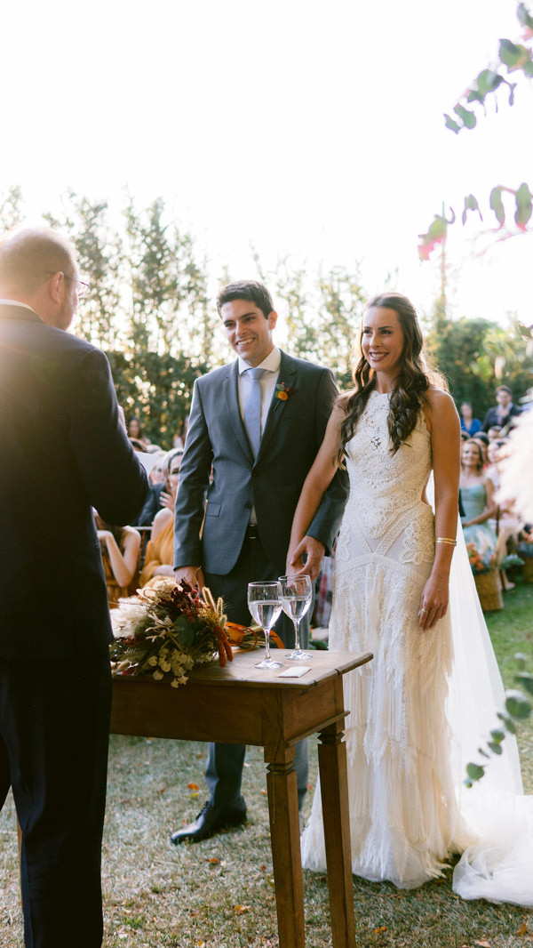 Como o sonho de Mayara Neme Mira e Guilherme Souza Lima Azevedo era dizer o esperado “sim” em um cenário bem arborizado, ao lado das pessoas que mais amam, o casal fez um casamento boho no interior de São Paulo, com 150 convidados. “Sempre quis fazer algo apenas com as pessoas próximas e que fazem parte da nossa vida. Ter quem de fato é especial para nós e fazer desse momento uma celebração com todos.”