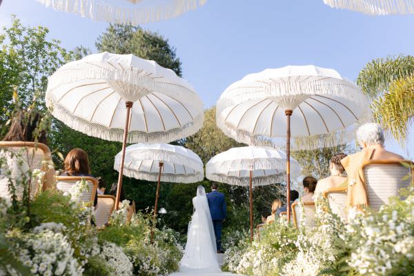 “Reuni algumas referências de casamentos ao ar livre, sempre com muito verde, flores exóticas e mais plantas do que flores. A iluminação também era importante, e eu adoro as luzinhas de gambiarra. Acho romântico, moderno e me lembra a Itália – meus ancestrais são italianos. Também pedi velas espalhadas, móveis e objetos vintage, além de flores e plantas em verde e marsala. Acho que ficou bem boho, estilo que adoro!”, explica Nathalia.