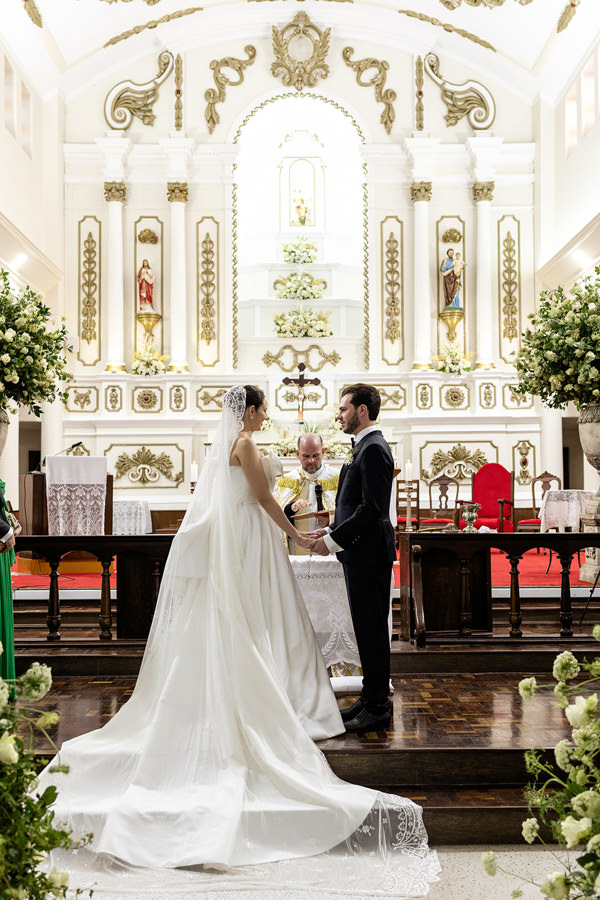 “Queria muito que o casamento fosse realizado na minha cidade e que a festa fosse na casa dos meus pais, onde cresci.” Maria Vitória Taques Mottin e Tarik de Mello Nasser realizaram o casamento na Igreja Matriz de Sant’Ana, em Castro, Paraná, junto a 550 convidados.