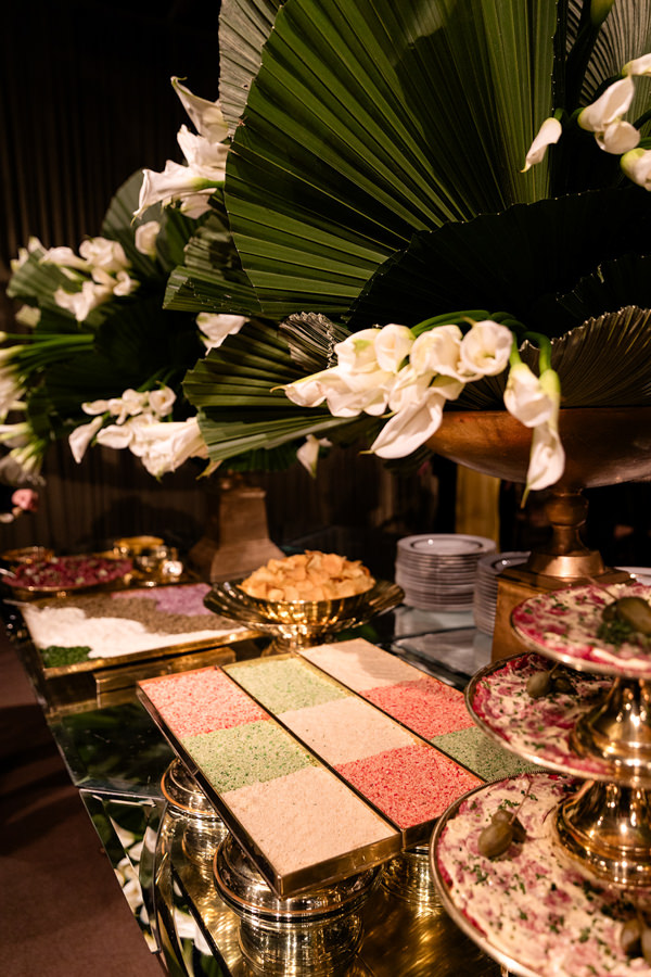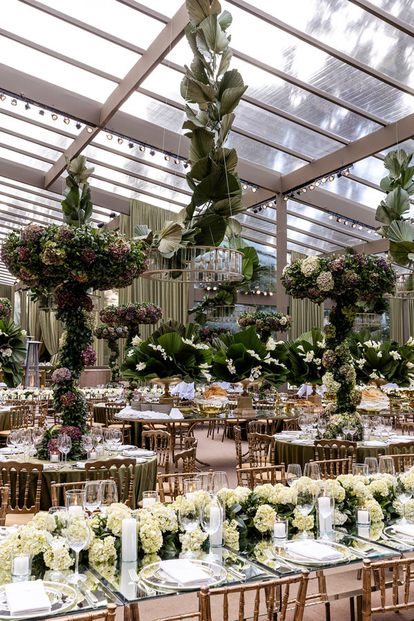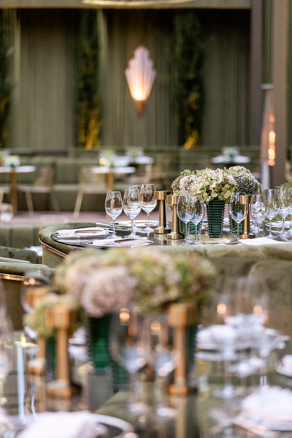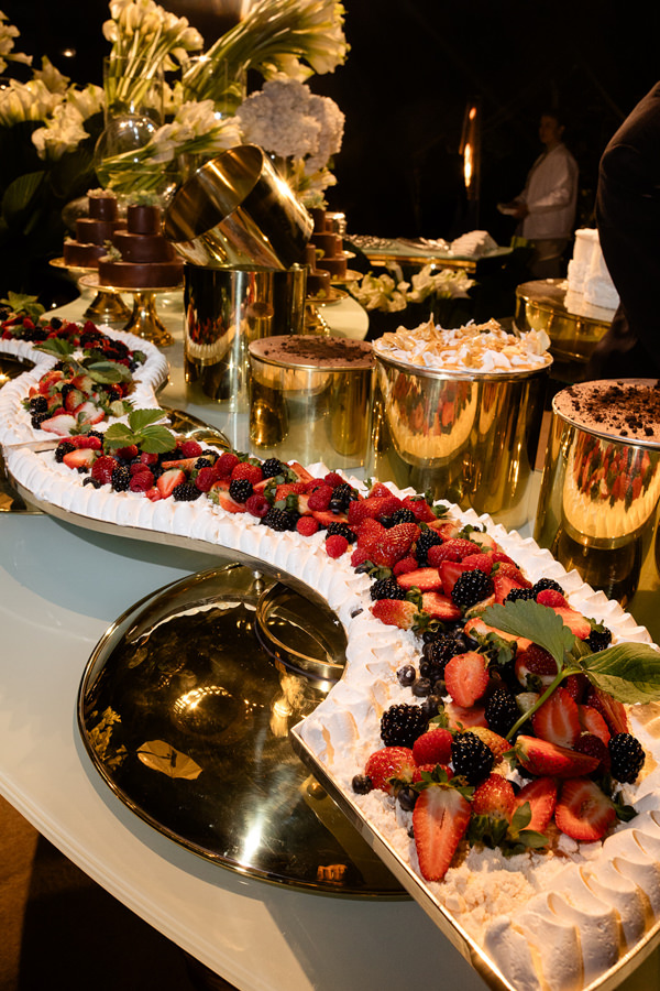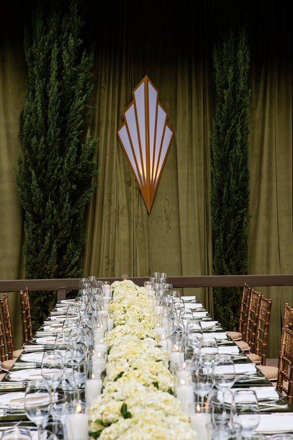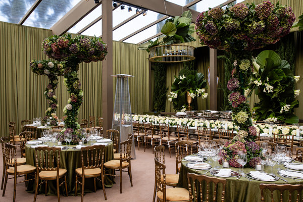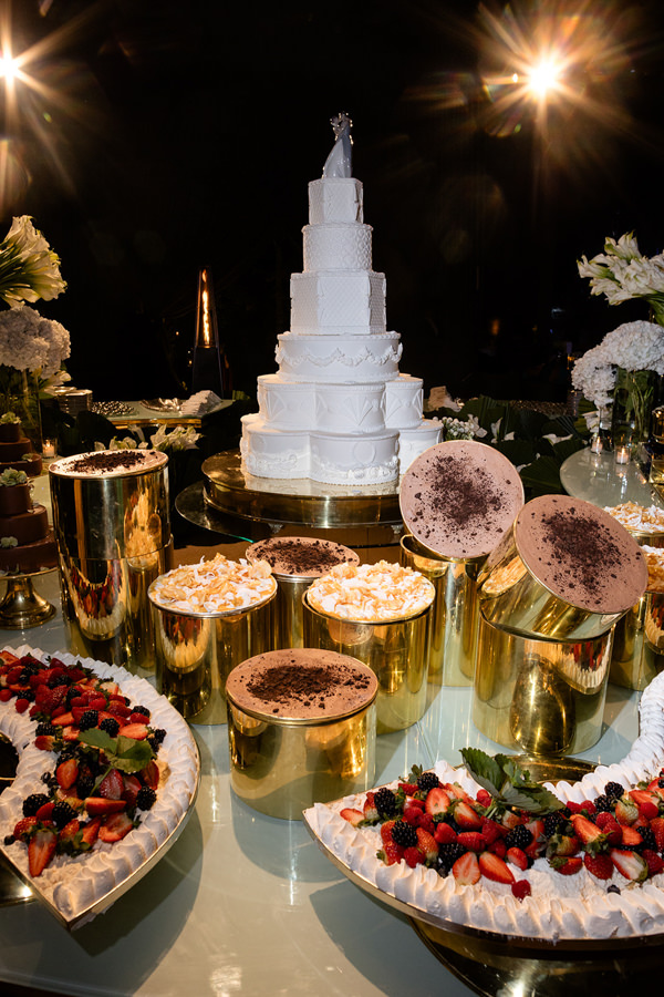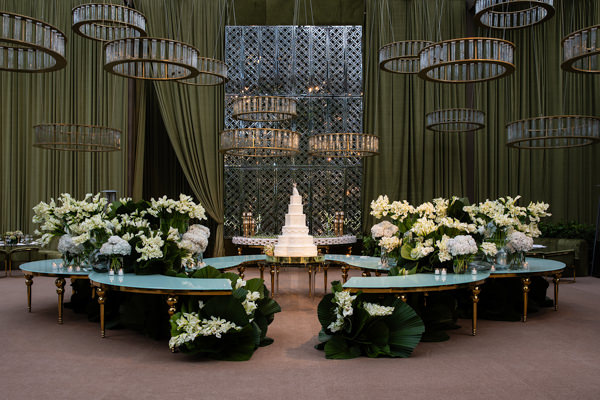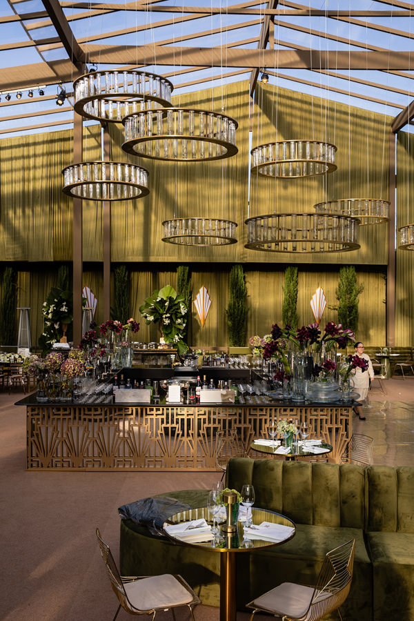 “A primeira certeza que tive foi de que os decoradores seriam João Callas – Decoração e o Leonardo Schmitt. João já havia feito a decoração da minha festa de 15 anos e se tornou amigo de toda a família; ele e o Leo são sempre impecáveis em seus eventos. Adoro o estilo art déco — não exatamente como tema, mas pela arquitetura —, e eles conseguiram incorporar referências desse estilo na decoração da festa, visíveis no veludo dos sofás da 100% EventosGuia de Fornecedores