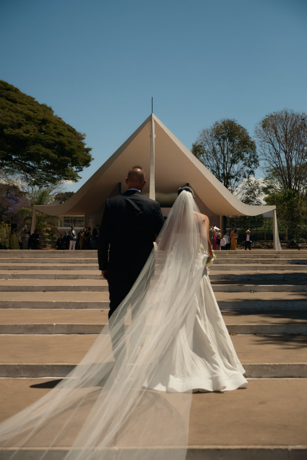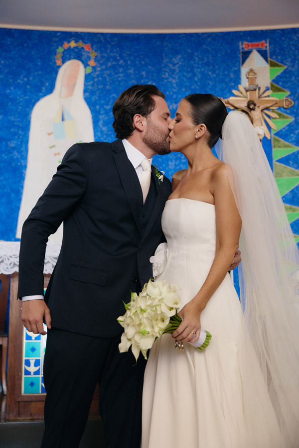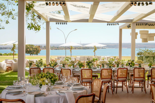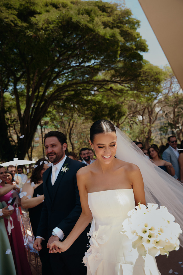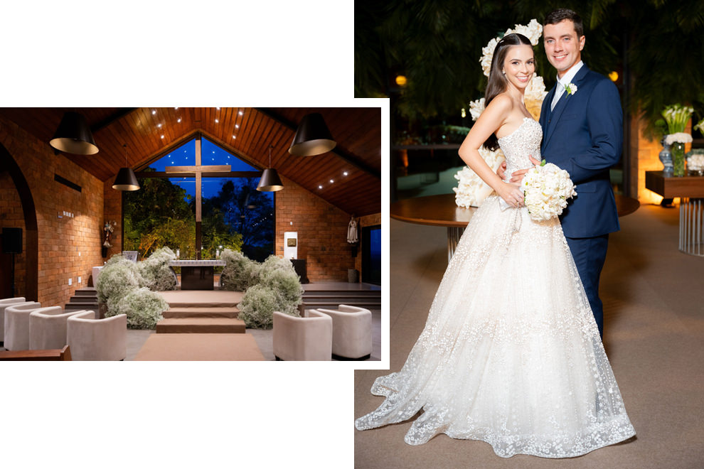 Brunna Silva Lettieri e Yuri Caldas Carneiro realizaram o casamento na Igreja Nossa Senhora de Fátima, em Brasília (DF), na presença de 250 convidados. “Sempre sonhei com um casamento em tons de verde e branco. Escolhemos a Igreja Nossa Senhora de Fátima, bem localizada em Brasília e com uma história muito interessante: foi o primeiro templo religioso construído na capital.”