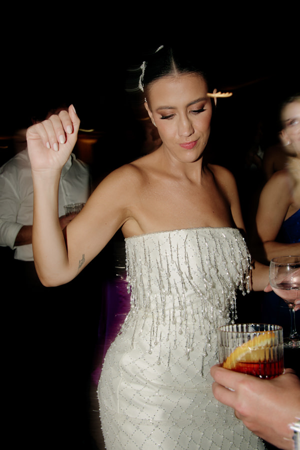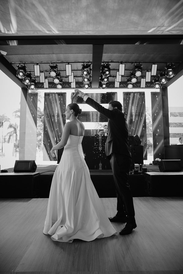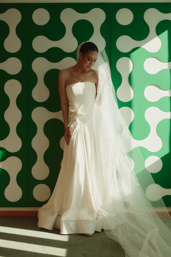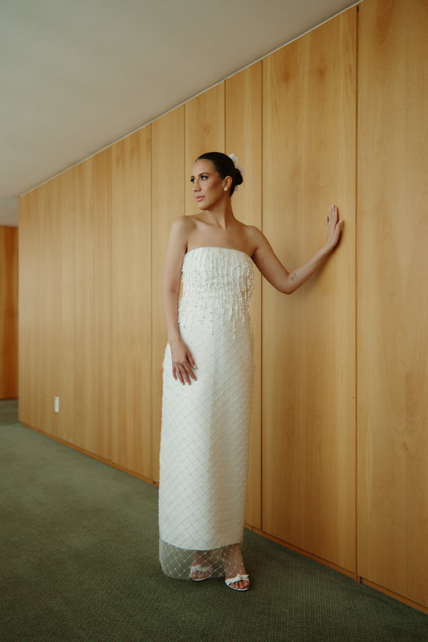 “Criar, desenhar e executar o meu próprio vestido de noiva, no início, pareceu um grande desafio, mas logo tudo passou a fluir de forma muito natural. Já tinha clareza de como queria o vestido e realizei todas as provas junto à equipe com bastante segurança. Para o primeiro look, escolhi um crepe patou; para o segundo, um bordado deslumbrante de cristais Swarovski. A ideia era ter dois vestidos com personalidades distintas e foi exatamente assim que conduzi o processo junto a equipe Brunna Lettieri Atelier.”