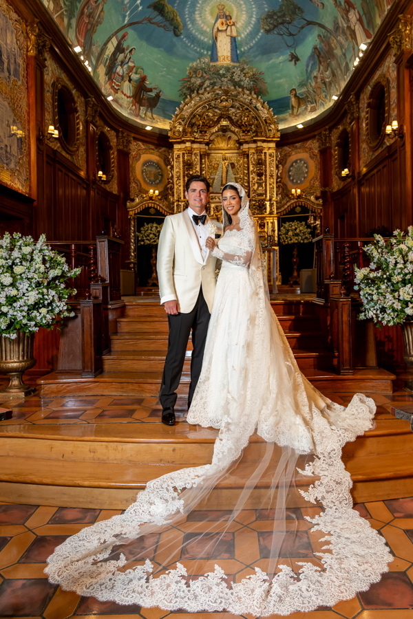 Isabella Cardoso Tobar e Marcos Molina disseram o “sim” em um casamento na Igreja Nossa Senhora do Brasil, em São Paulo, na presença de 1.400 convidados. “Desde a primeira vez que entrei na Igreja Nossa Senhora do Brasil, tive certeza de que era ali que gostaria de me casar. Foi Marcos quem me apresentou a igreja, que ele frequenta desde a infância. Além de toda a sua beleza, o espaço abriga um altar com a imagem do Menino Jesus de Praga, santo do qual eu ele somos devotos, o que tornou essa escolha ainda mais especial e significativa para nossa cerimônia religiosa.”