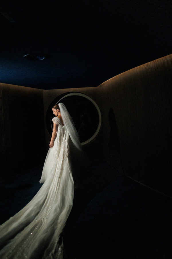 “De volta ao Brasil, marquei um horário com o Júnior Santaella. Além de amigo da minha sogra, ele assinou o vestido de noiva dela há 30 anos. A partir daí, relaxei. Comecei a salvar referências, entender o que realmente gostava e visitar alguns outros ateliês em São Paulo. Seis meses antes do casamento, voltei ao ateliê do Júnior já com uma ideia mais clara do que queria, e então começamos o processo do meu vestido. Nosso santo bateu desde o primeiro momento.”