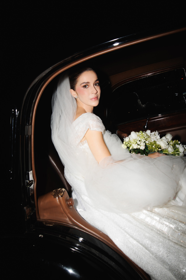“Logo que fiquei noiva, viajei a Paris com minha sogra e visitamos vários estilistas — Elie Saab, Zuhair Murad, Oscar de la Renta… Como nunca tinha sonhado com um vestido específico, confesso que fiquei um pouco assustada no início. Primeiro, porque nada me encantava de verdade; e segundo, porque me sentia completamente fantasiada.”