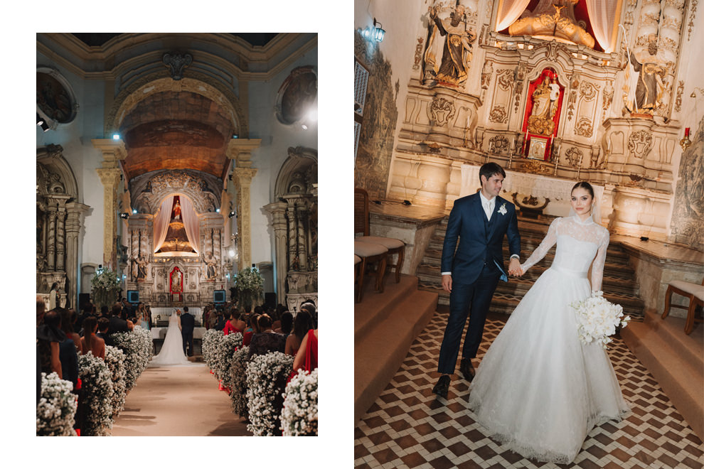Bárbara Vilhena Montenegro e Vital Rodrigues de Almeida Neto realizaram o casamento na Igreja São Francisco, em João Pessoa (PB), na presença de 250 convidados. “Nasci sabendo que me casaria na São Francisco. Na verdade, antes mesmo de nascer, eu já estava lá, ainda no ventre da minha mãe, que se casou com meu pai nessa mesma igreja, há 23 anos. Cada detalhe desse lugar me encanta. É um verdadeiro centro cultural, um patrimônio histórico da cidade.”