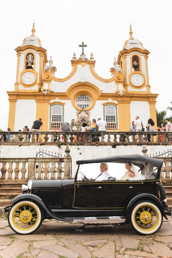 “Sempre quis uma cerimônia clássica, com orquestra e músicas tradicionais”, disse a noiva. E a Igreja Matriz de Santo Antônia não poderia ser um cenário melhor: fundada em 1710, é uma das obras-primas da arquitetura barroca em Minas Gerais.