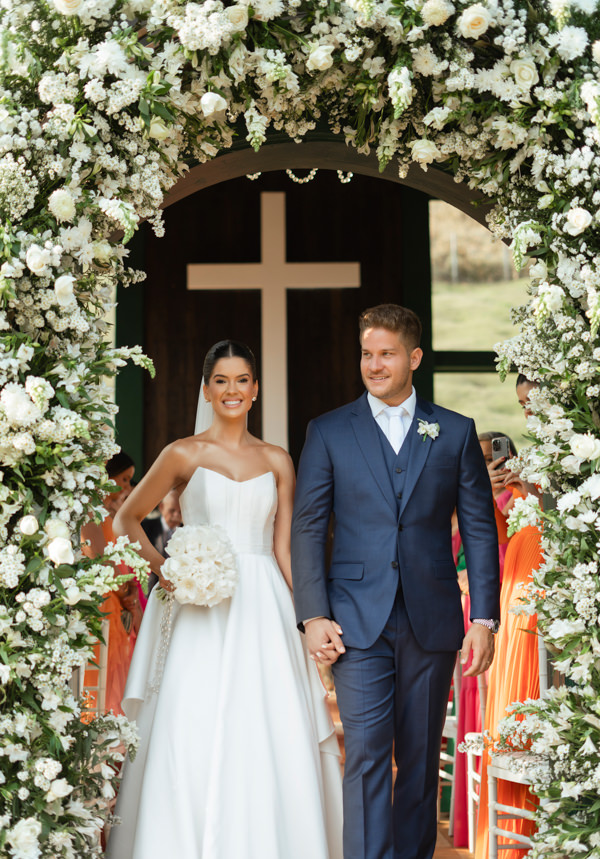 “Gostaríamos de reunir a família e os amigos em um final de semana para celebrar a nossa união”, contaLuiza Corrêa. Ela e Thiago Araújo realizaram o casamento no interior de Minas Gerais, com 215 convidados.“Não queria somente a festa em si, mas a experiência de um lugar único, bem lindo e que remetesse as origens da nossa família tradicional mineira.”