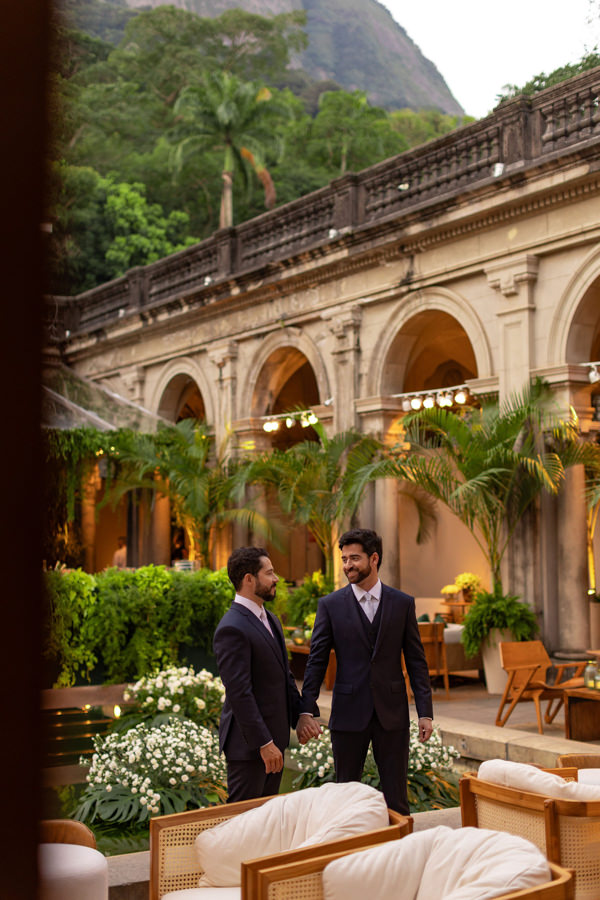 Bernardo Marques Bordallo Rangel e Eduardo Bruno Corrêa tinham o sonho de realizar o grande dia em algum cartão postal do Rio de Janeiro. Então, fizeram o casamento no Parque Lage, com 500 convidados. “O nosso maior sonho era casar em um dos cartões postais do Rio de Janeiro, e dentre as várias belas opções, o Parque Lage com certeza era o mais especial, e sempre com a presença da nossa família e amigos.”