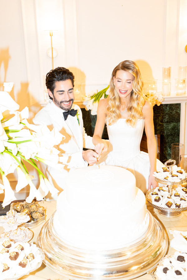 “Optei por seguir algumas tradições de diferentes culturas: cortei o bolo de baixo para cima, fizemos a torre de champagne e incluí o clássico “something old, new, borrowed and blue”.”