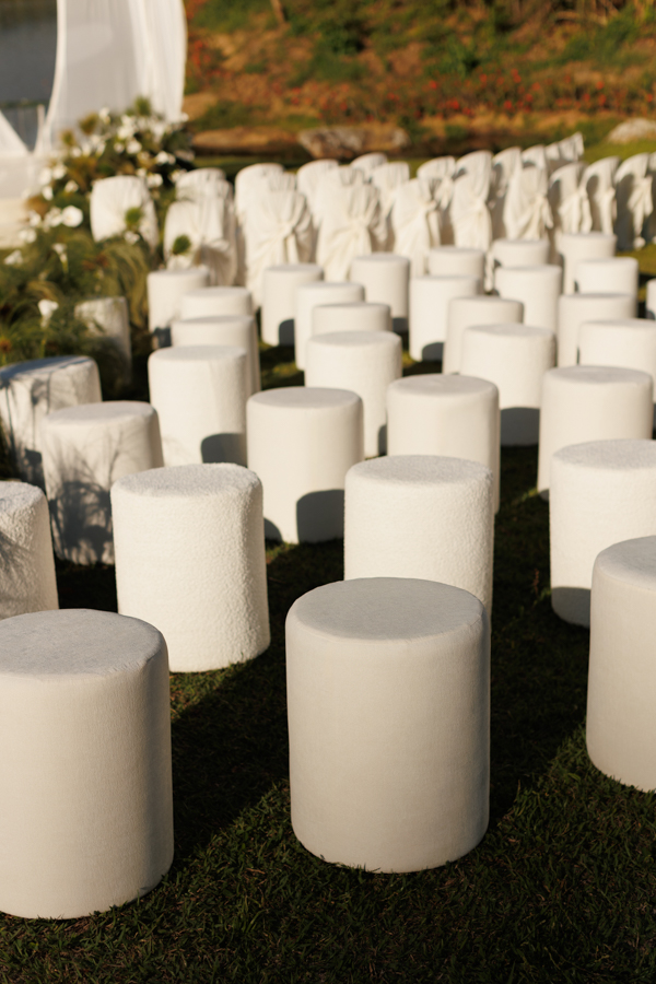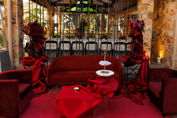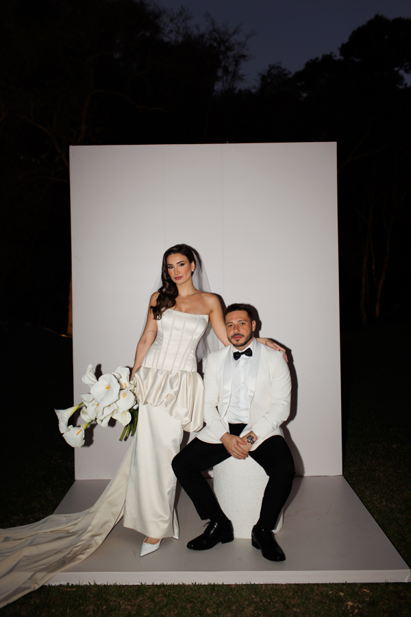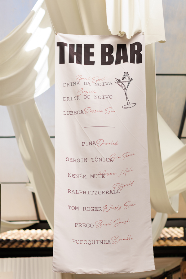 “Um detalhe bem particular da decoração do nosso casamento foi a área de fumantes. O Haras tinha um espaço ao lado da pista de dança que, de alguma forma, ficava mais isolado da festa. Como temos amigos que fumam, por que não criar ali um ambiente especial? Assim nasceu um lounge todo em vermelho, com uma vibe mais underground, quase um Moulin Rouge, que trouxe ainda mais personalidade para o evento.”