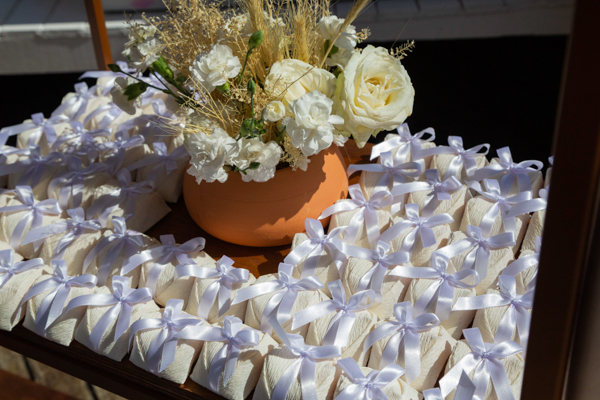 Os arranjos seguiram um desenho orgânico, de formas livres, acomodados em vasos de barro. “Ao todo, utilizamos mais de 100 vasos, garantindo unidade visual e coerência com o conceito proposto”. A escolha do barro foi intencional: o material conversa diretamente com o tema e contribui para uma ambientação harmônica. “Em diferentes formatos, tons e tamanhos, os vasos ajudaram a criar ritmo e continuidade nos espaços, sempre com leveza e sem excessos”.