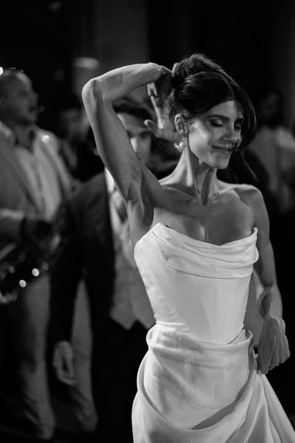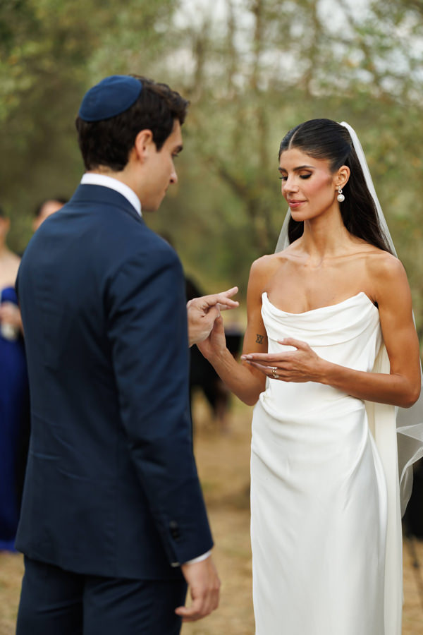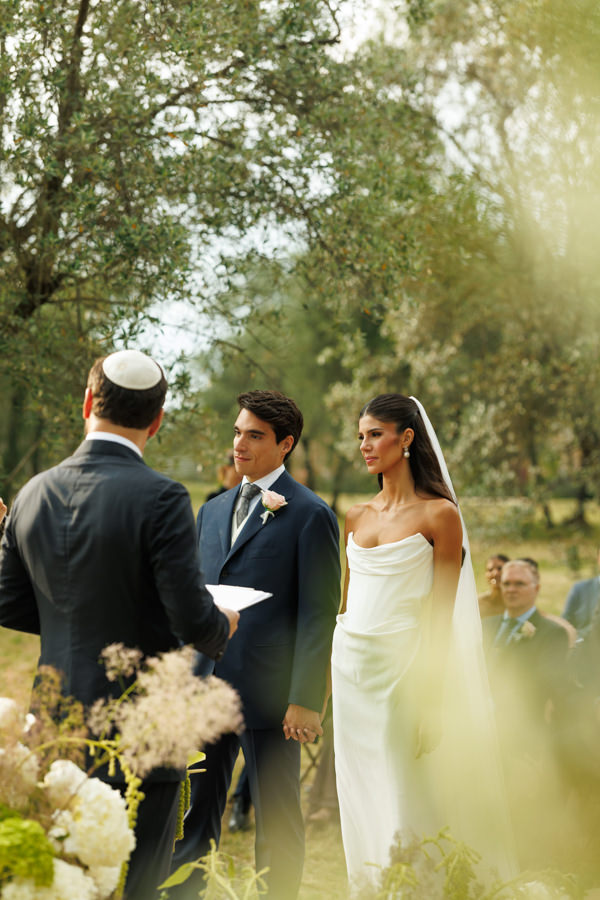“Como o Guilherme é judeu e eu sou católica, decidimos não ter nem rabino nem padre, e sim dois amigos muito próximos para conduzir a celebração. Incorporamos alguns elementos da tradição judaica, como as sete voltas que a noiva dá ao redor do noivo e a quebra do copo, de uma forma leve, simbólica e emocionante. O resultado foi uma cerimônia que refletiu perfeitamente quem somos e emocionou todos os presentes de um jeito único.”