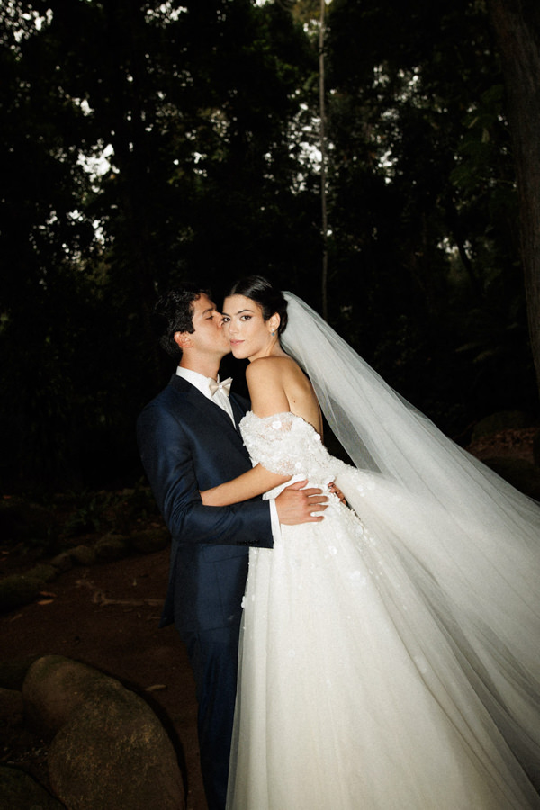 “Sempre soube que queria um vestido de alças, inteiro bordado e com uma cauda muito longa. Cheguei a ir para NY provar alguns modelos no Elie Saab, mas optei por fazer do zero. Achei que o processo e toda a experiência de criar meu vestido de noiva seriam muito especiais. E estava certa.”
