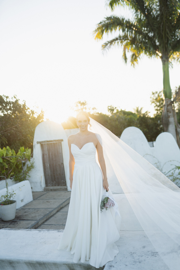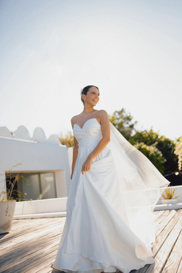 “Queria um vestido que não ficasse datado. Não gosto de rendas ou bordados, então o modelo precisava se sustentar pelo caimento impecável e pela qualidade do tecido, deixando que a silhueta falasse por si. Também não poderia ser volumoso demais, já que o casamento seria ao ar livre, em uma cidade litorânea, precisava ter leveza, sem abrir mão da imponência que destacasse o protagonismo da noiva.”