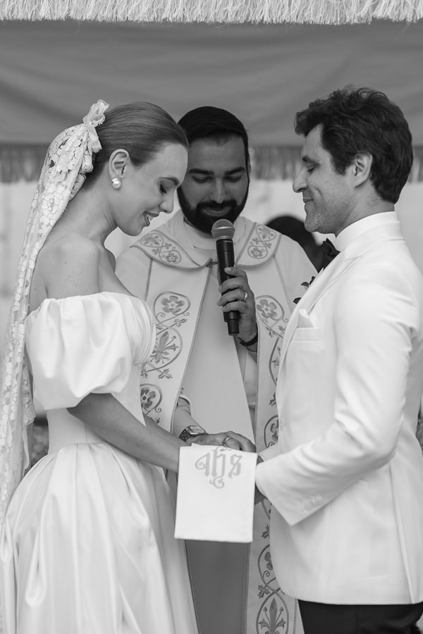 “A mantilha! Esse é um capítulo à parte na história da minha família. Trata-se de uma tradição passada de geração em geração entre as mulheres. Minha bisavó, Elza Bezamat (mãe da minha avó materna), trouxe a mantilha de navio para o Brasil. Cresci vendo fotos e sonhando com o dia em que a usaria. Realmente, não havia como deixá-la de fora — até porque acho ela maravilhosa! “.