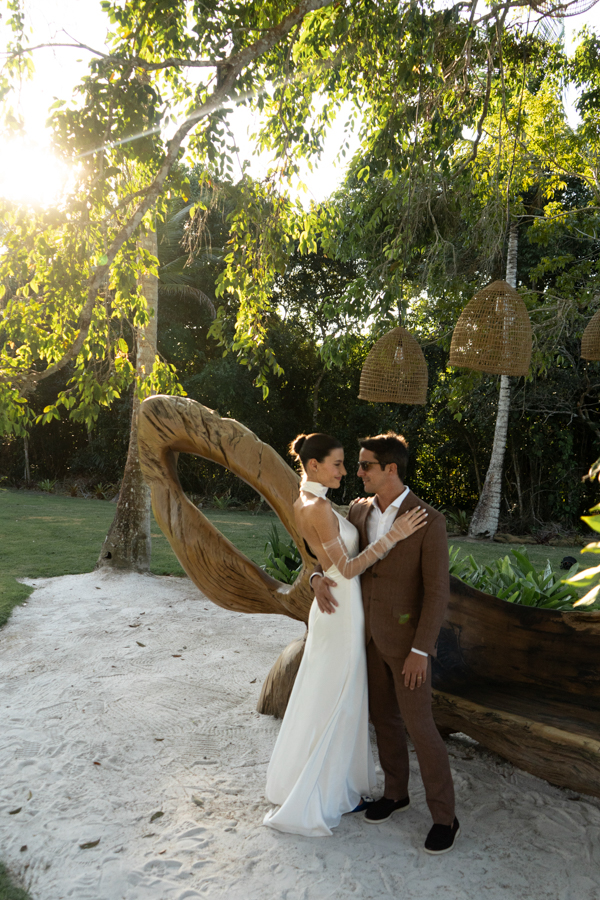 Vanessa Clemente Carvalho e Tiago Boaventura Lopes disseram o “sim” em um destination wedding em Trancoso, Bahia, na presença de 150 convidados. “Eu e Tiago frequentamos Trancoso há anos e o lugar sempre foi muito especial para nós. Foi lá, inclusive, que ele me pediu em casamento.”