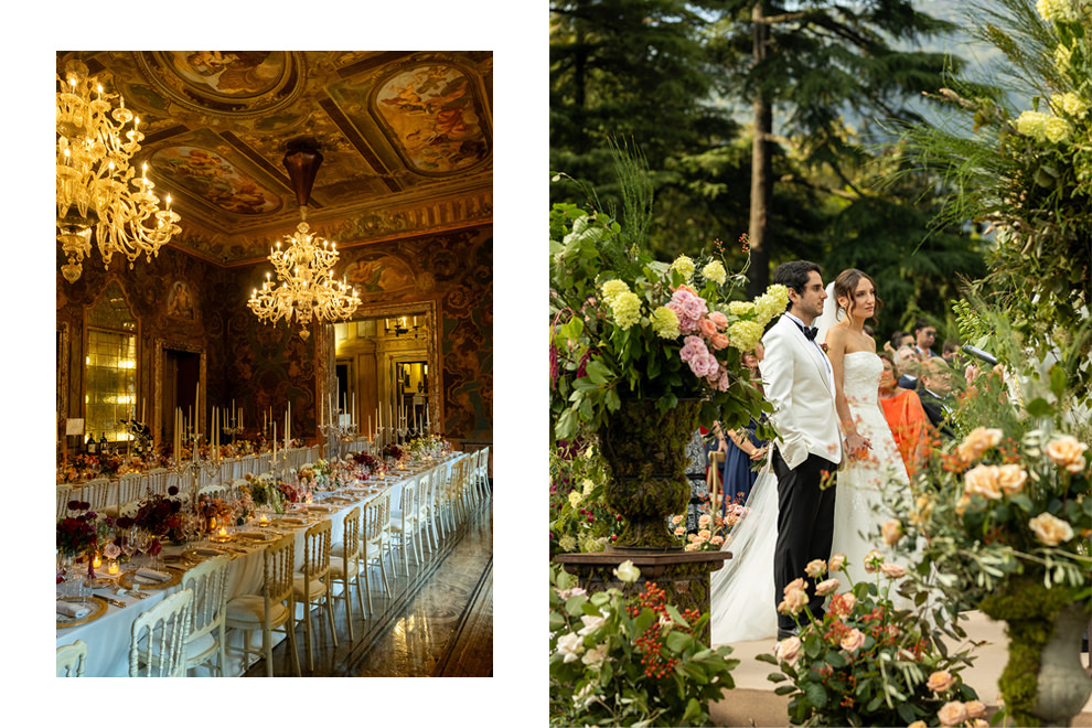“Cada cena da decoração carrega um gesto, um significado e uma intenção. O uso recorrente de romãs, hortênsias e flores de alho por Fernando Frisoni, que assina os arranjos florais, construiu uma identidade única, marcante e inesquecível, com tudo cuidadosamente pensado e harmonizado com muita elegância.”