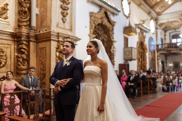 “A Igreja Matriz de Santo Antônio, em Tiradentes, é um cenário fascinante, com uma arquitetura esplêndida que atravessa séculos e carrega uma aura única de beleza e imponência. A escolha por nos casarmos ali foi natural: além da beleza incomparável, sentimos que sua história e espiritualidade traduzem perfeitamente a força e a fé que desejávamos para a nossa união.”