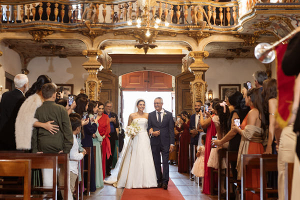 Ellen Drumond de Paula Capucho e Marco Thúlio Saviatto Duarte disseram o “sim” em um destination wedding na Igreja Matriz de Santo Antônio em Tiradentes, Minas Gerais, junto a 280 convidados. “Sonho com o meu casamento desde que tinha cerca de quatro anos. Tenho uma lembrança muito viva de estar sentada no chão da sala de casa, ainda pequena, folheando uma revista de noivas e escolhendo, com toda a inocência do mundo, o que eu gostaria de ter no meu grande dia. Cresci nos anos 90 encantada por aquelas imagens e, desde então, sempre imaginei um casamento religioso tradicional e cheio de romantismo, sem excessos ou extravagâncias. Sempre fui muito romântica, e o que mais me importava era viver esse momento cercada de amor, da família e de simbolismos capazes de atravessar gerações.”