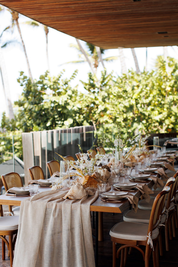 “Quis preservar a essência do lugar, sem descaracterizá-lo, mas trazendo um toque pessoal na decoração: uma proposta moderna e elegante. A paleta foi composta por off-white e branco, com elementos naturais, como conchas e texturas que remetiam à praia. Sempre acreditei que a decoração exige confiança total no profissional, por isso escolhi Júlia, do Museu de Grandes Novidades. A visão dela se alinhava completamente à minha, o que me deu segurança para delegar e deixar o projeto fluir.”