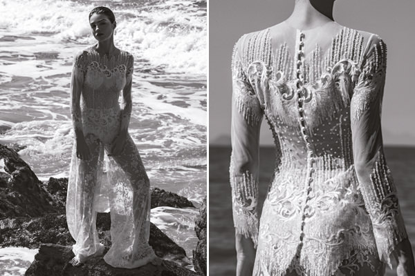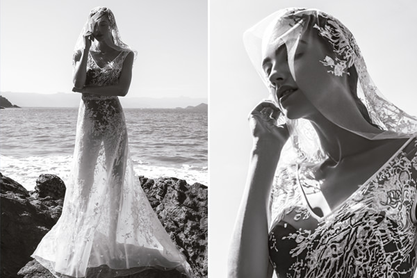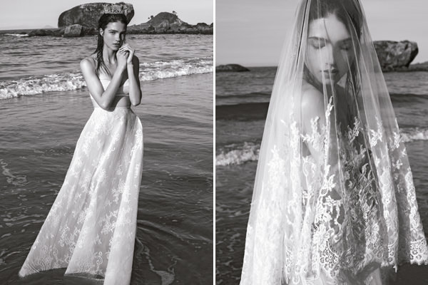 - Primor: Cada modelo criado por Lucas Anderi conta com o cuidado e rigor de qualidade do estilista. Os materiais mais utilizados são rendas francesas e italianas, tule e organza, mikado e zibeline de seda, além dos bordados manuais e aplicações de cristais – que são marca registrada do estilista.