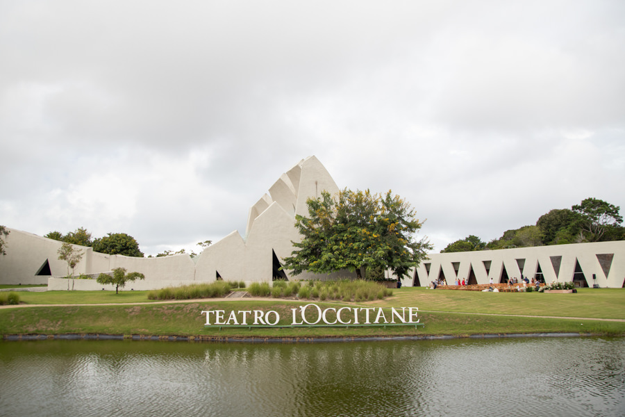 O design do teatro remete a folhas de palmeira da Bahia. Além dessa curiosidade arquitetônica, a estrutura do local foi pensada para potencializar a eficácia acústica e climática. Os ambientes do teatro são divididos em cinco: dois palcos, gramado, mata e a Bisutti Trancoso Teatro L’OccitaneGuia de Fornecedores