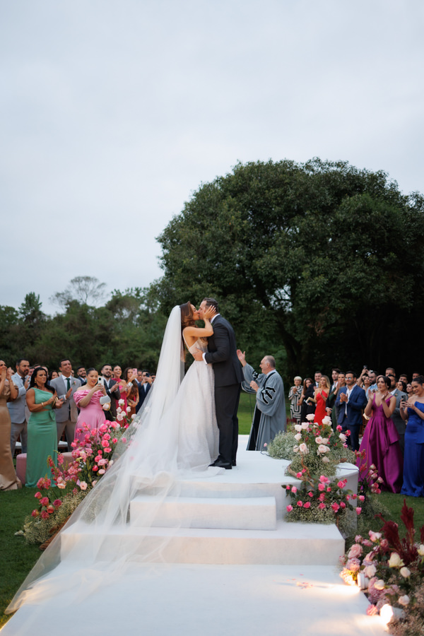 Vicenza e Michael disseram o “sim” em um destination wedding em Trancoso, ao entardecer, na presença de 180 pessoas. Como o casal mora fora do Brasil, um dos desafios foi planejar o casamento à distância.