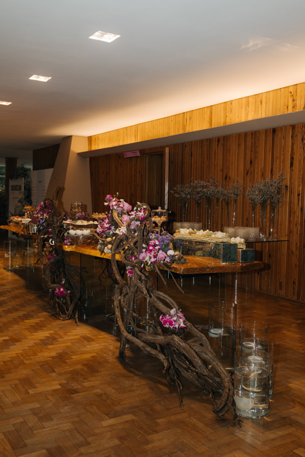 Ao entrar no Parque do Palácio, nossos convidados eram transportados para um um jardim encantado criado pela VDesign. Valter Braga, que comanda a empresa surpreendeu a todos com um projeto orgânico, romântico e cheio de bossa. A sensação que dava, ao chegar nos lindos arranjos em movimento, era que sairiam “fadinhas” dentre as flores. Todo o mobiliário foi 100% EventosGuia de Fornecedores