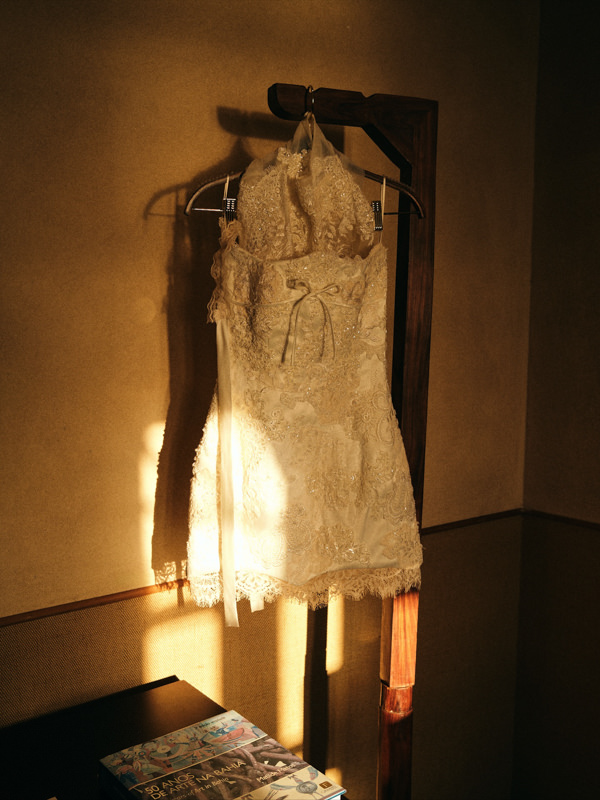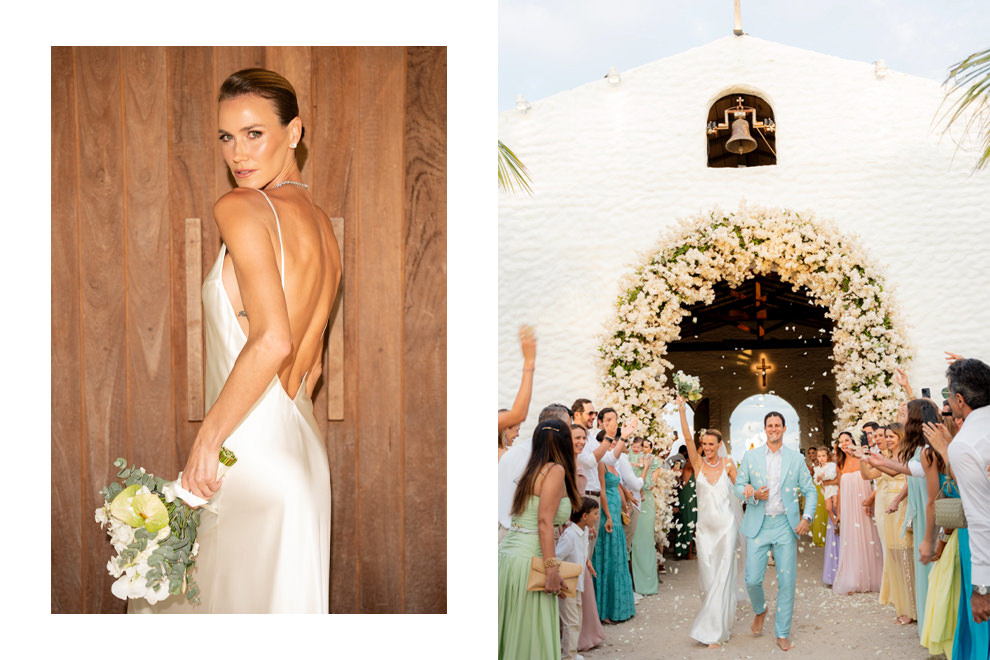 Catarina Tourinho fazia questão de ter um vestido romântico e delicado, mas com uma pitada sexy. Desde o início, ela sabia que o modelo seria curto, e, junto da estilista Rebeca Nepomuceno, conseguiu brincar com esse conceito. “No pré-wedding quero mostrar meu lado fashionista, abusar da minha personalidade na moda”, conta a noiva em exclusividade à Constance Zahn.