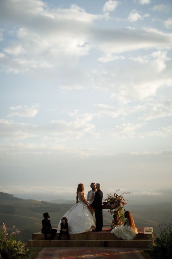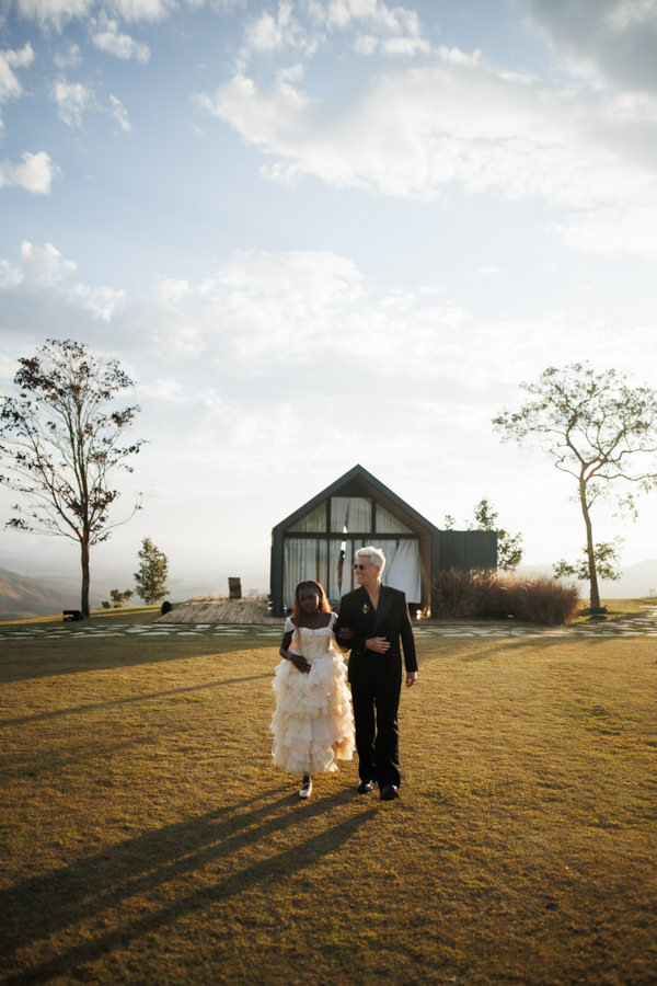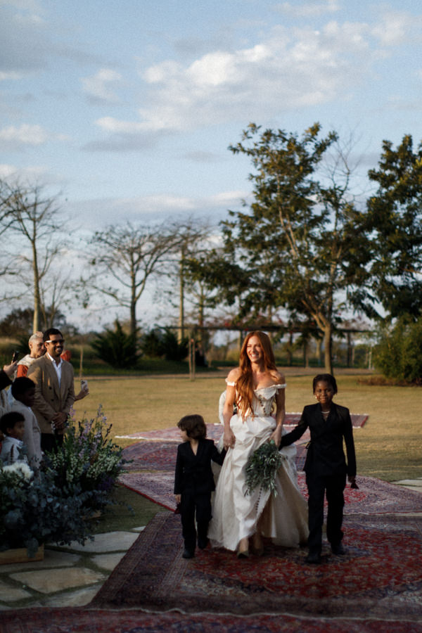 Fotos: Alê Bigliazzi e Guido Gutiérrez Rui | Espaço: Rancho da Montanha | Celebrante: Henrique Vieira | Decoração, flores, paisagismo, objetos e tapetes: Museu de Grandes Novidades | Mobiliário: Dubambu | Cobertura: Kairos Cobertura | Buffet, doces e bolo: Cheff India | Bem-casados: Conceição Bem-casados | Vestido de noiva: Dilara Findikoglu | Beleza da noiva: Cleide Araújo | Sandália da noiva: YSL | Traje do noivo: Wales Bonner | Sapato do noivo: Jil Sander | Vestido daminha: Helô Rocha | Traje pajens: Herchcovitch Alexandre | Sandália daminha: Mansur Gavriel | Iluminação e sonorização: 021 Eventos e Festas | Geradores: BeltLoc Geradores | Música da cerimônia: Maria Gadú | Atração especial: Marcelo Dai | DJ: DJ Aisha & DJ Yaminah e Raphael Fidelis | Banda: Feyjão