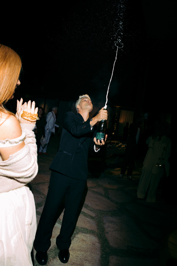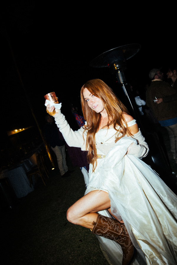 Após a cerimônia, a noiva removeu a cauda do vestido, que se transformou em um modelo curto para curtir a festa. Além disso, ela trocou o salto por botas.